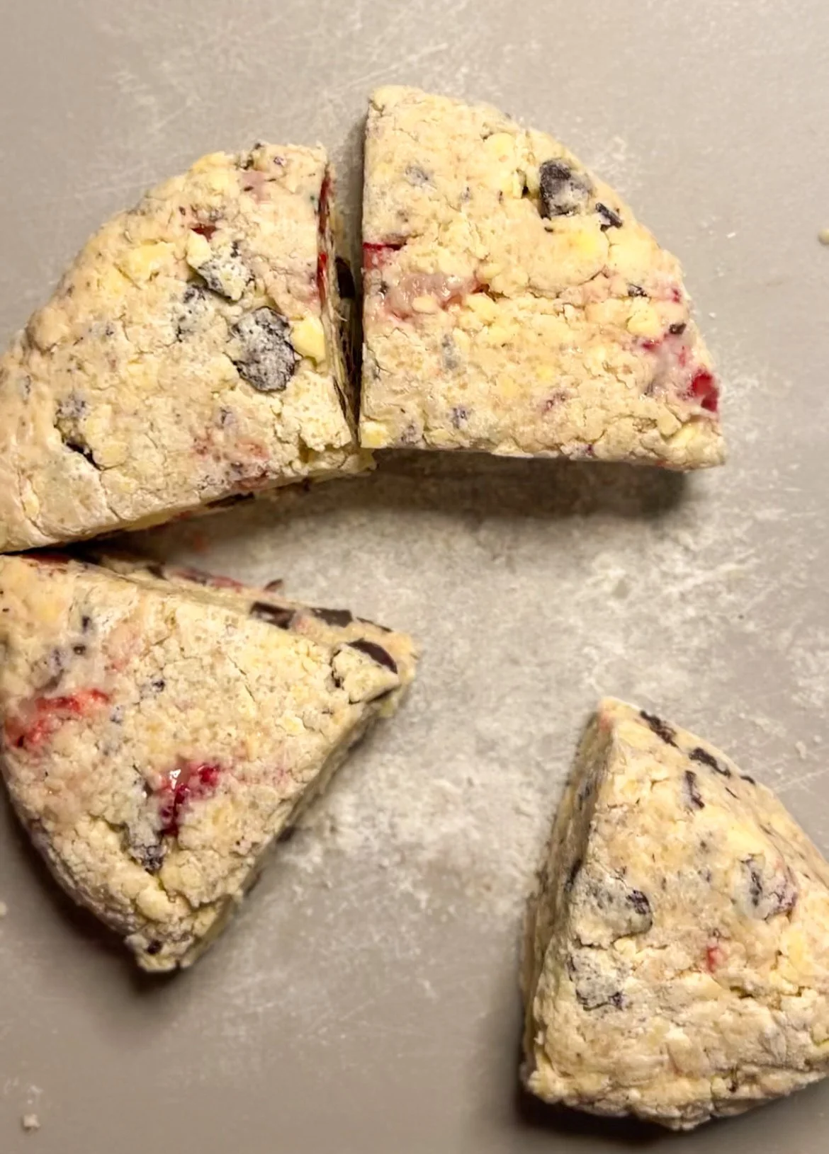 Transfer the dough to a lightly floured surface and gently fold in the chopped dark chocolate and diced strawberries, being careful not to overwork the dough.Shape and bake: